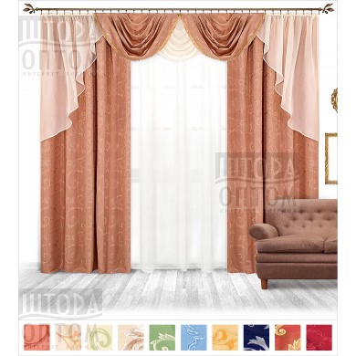 Комплект <<Парижанка>> состоит из жаккардовой шторы и регулируемого ламбрекена, скомбинированного из жаккарда и вуали. Ламбрекен украшен кокетливыми кисточками и смотрится мило. Покупатели, заказывающие у нас этот комплект, остаются довольны тем, как он способен освежить и украсить помещение.